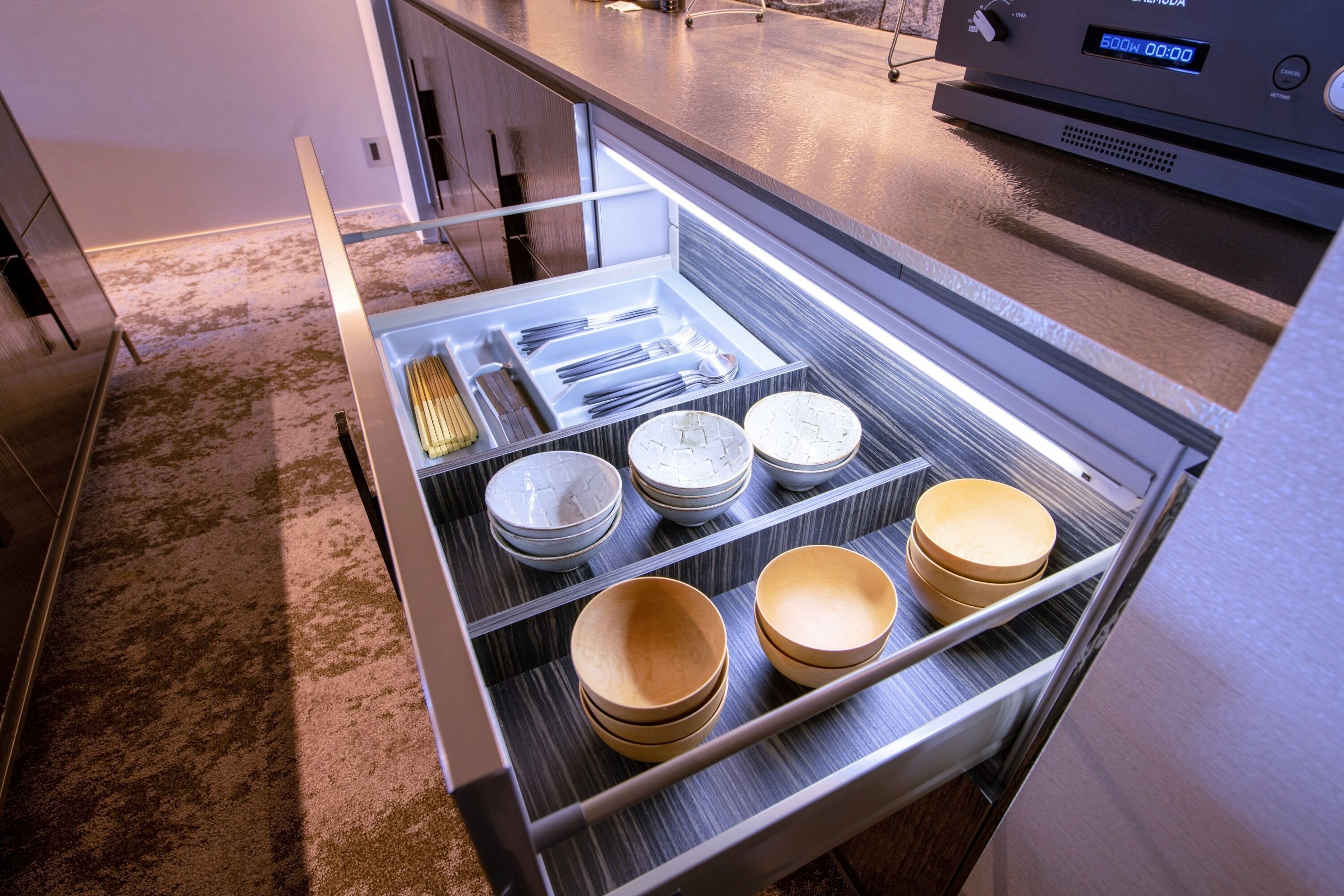 お部屋にキッチンと乾燥機能付き洗濯機が有り、子供連れでも快適でした。 キッチンには、カラトリーセット、調理器具、電子レンジ、二口のIHクッキングヒーターも揃っていました。足を伸ばして入れるバスタブは、追い焚き機能付き。 中期、長期の滞在に適している素敵なホテルでした。