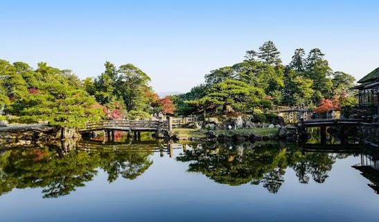 玄宮園位於彥根城內,是由第四代藩主井伊直興整修的庭園。值得一看的是滿佈整個庭園的池塘和池塘周圍的庭園!讓人感受到日本庭園的美麗。紅葉季節的燈光秀也很迷人!