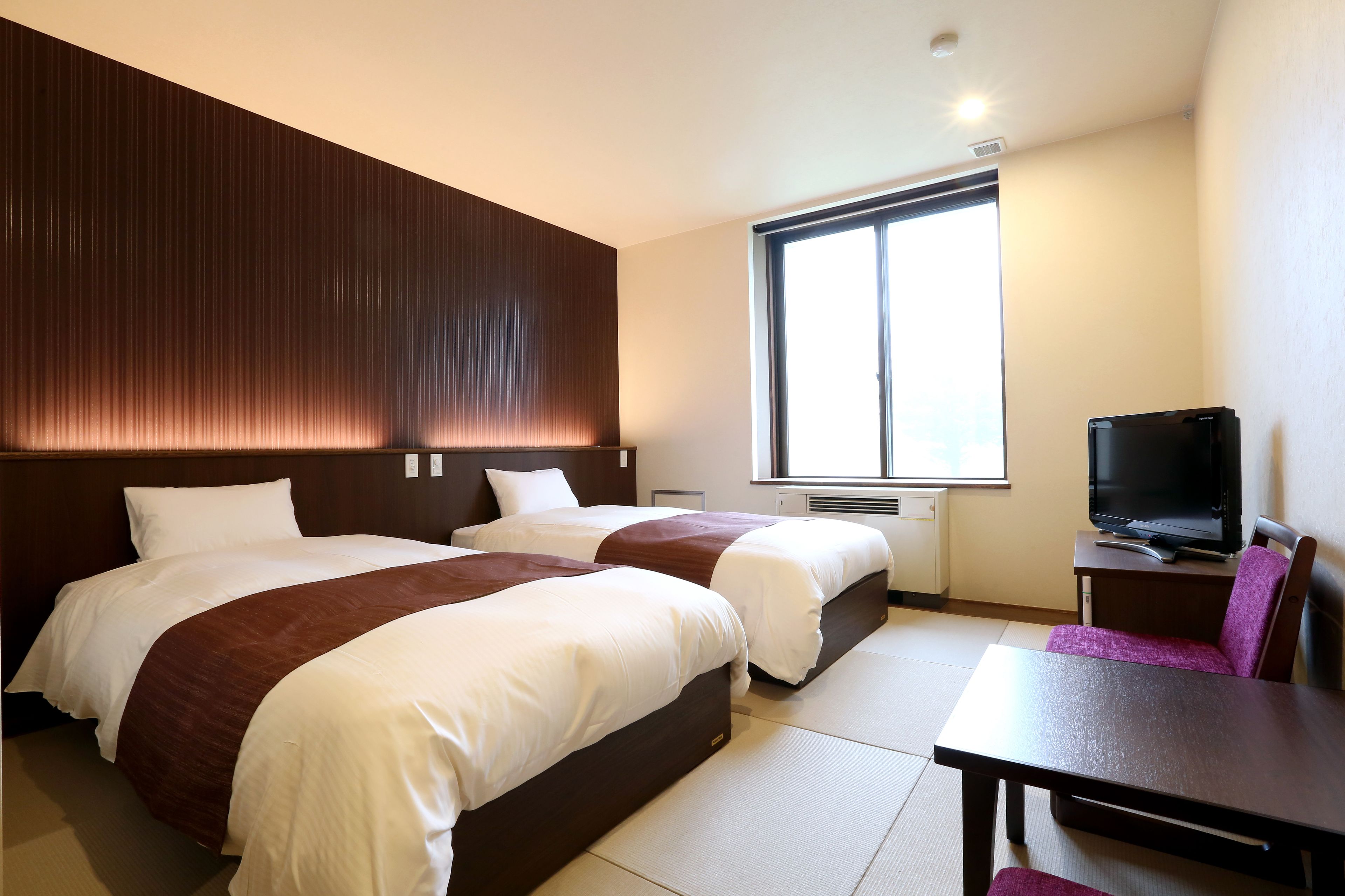 ホテルは千代田区の保養地として使われていたとの事で、建物の外観は古さもありますが、部屋はリニューアルされており、落ち着いた広々とした癒しの空間です。