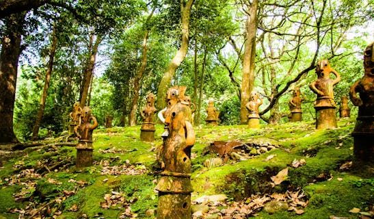 宮崎市のはにわ園は、約400基ものハニワ複製品が並ぶ古代の世界を再現したスポット。その壮大な光景は一見の価値あり。特に歴史好きにとっては訪れてみたい絶対的な観光地です。