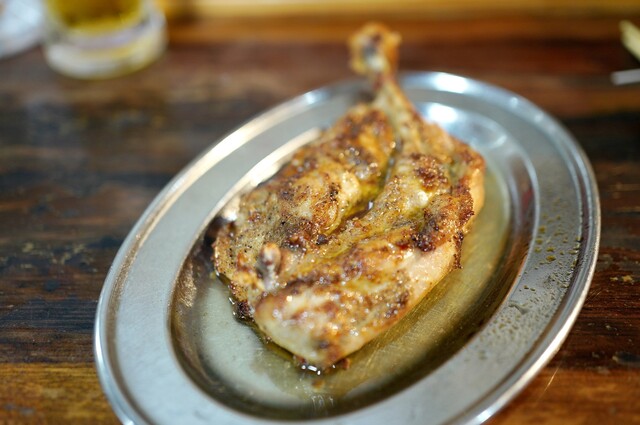 ニンニクたっぷりのスパイスで味付けをして、丸ごと焼き上げたワイルドな肉料理。歯ごたえがあり、強い旨味が特徴の親鳥と、やわらかくジューシーな若鳥の2種類がありますので、お好きな方にかぶりついてください!