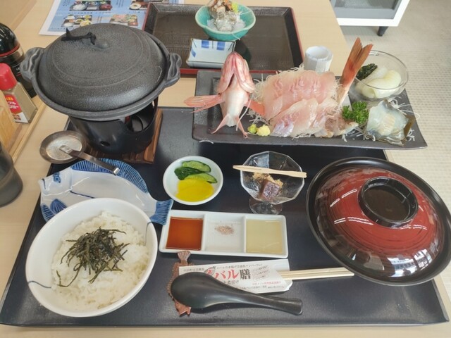 高級魚であるメバルを贅沢に丸ごと1匹使用し、刺身と煮付けにした御膳。刺身・煮付けともに、淡白で上品な味わいを楽しむことができます。新鮮なイカを使用した「イカ刺しご飯」がセットになっているのも嬉しいポイント。
