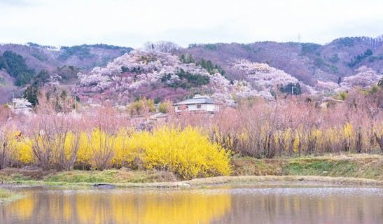 東京ドーム約1個分の面積を持つ花見山。東北随一の花見の名所であり、桜や梅、レンギョウ、モクレン、サツキ、ツツジなどが一斉に咲き誇ります。淡いピンクや濃いピンク、白、黄など、グラデーションのように広がり、それぞれが咲き競う姿はまさに"桃源郷"です。花見山は個人所有の山であり、畑を公園として開放したのが始まり。70年以上もの年月をかけて築かれた「福島の桃源郷」は、見る者に感動を与えてくれるでしょう。