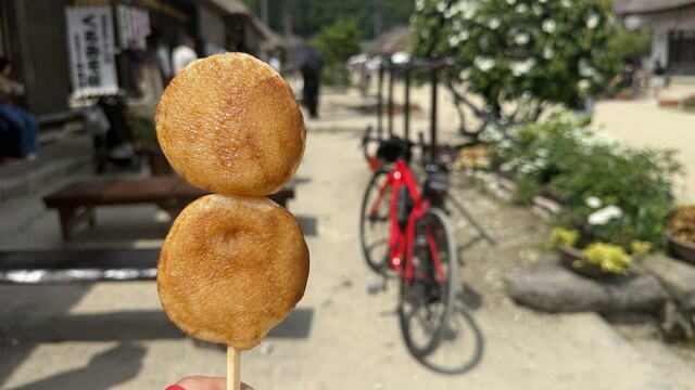 しんごろうとは、うるち米を丸めて潰したものに「じゅうねん味噌」を塗り、炙って食べる南会津の郷土料理です。味噌とエゴマの風味は、どこか懐かしさを感じる味。外はサクサク、中はふんわりとした食感が人気。