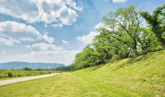 宇治川和木津川之間的堤防。散步在以櫻花聞名的豐富自然的河川敷上,享受四季不同的風景。對於想要欣賞風景的人來說,推薦從堤防旁邊的"櫻之相會館"的展望台上欣賞風景。