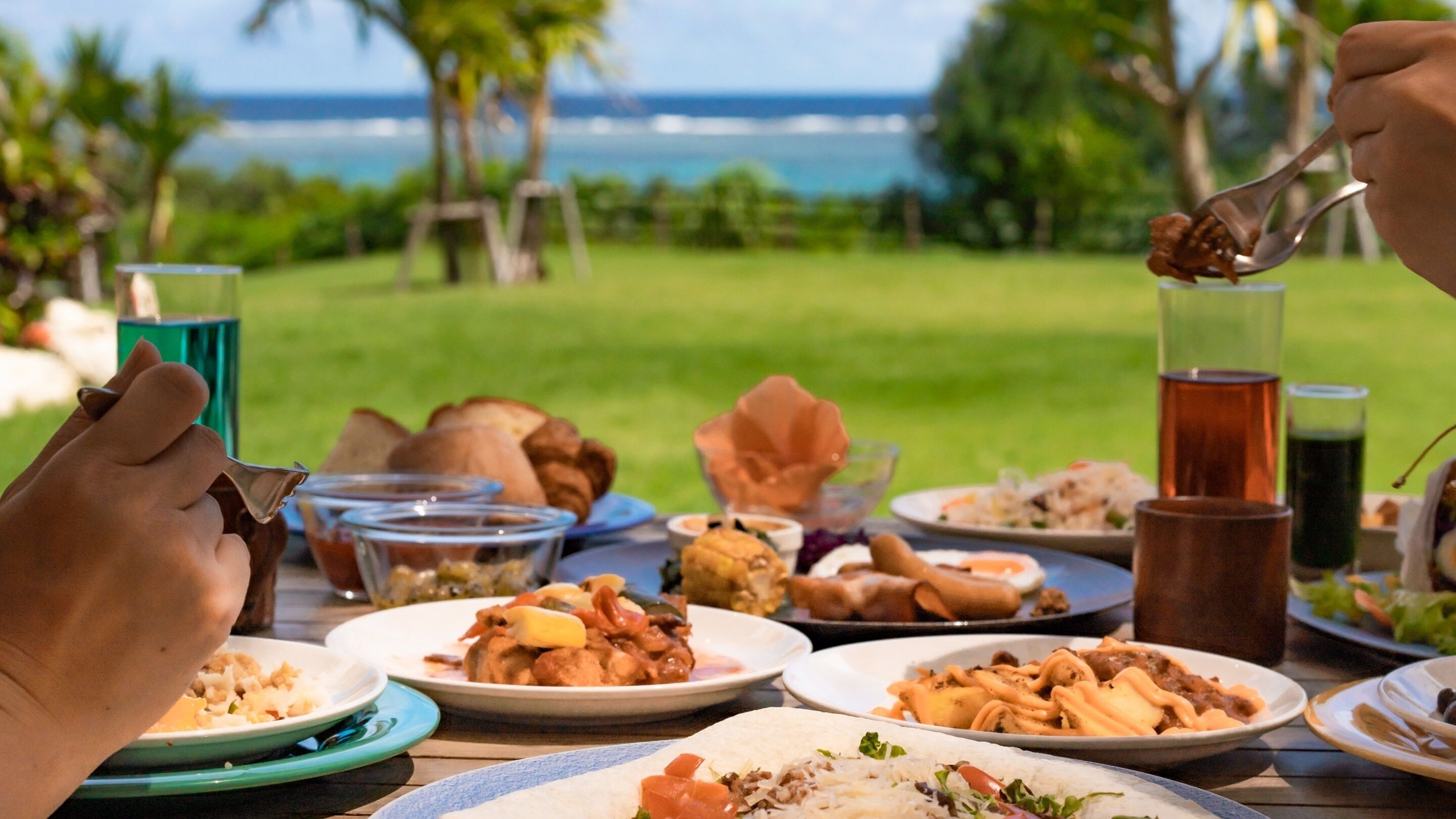 在宮古島的一家位置優越的咖啡館享用午餐如何?一邊欣賞海景,一邊享用午餐是非常特別的體驗!您可以品嚐到使用島上食材製作的料理,或是看起來很時尚的料理。這是推薦您在島上悠閒度過時間的好去處。